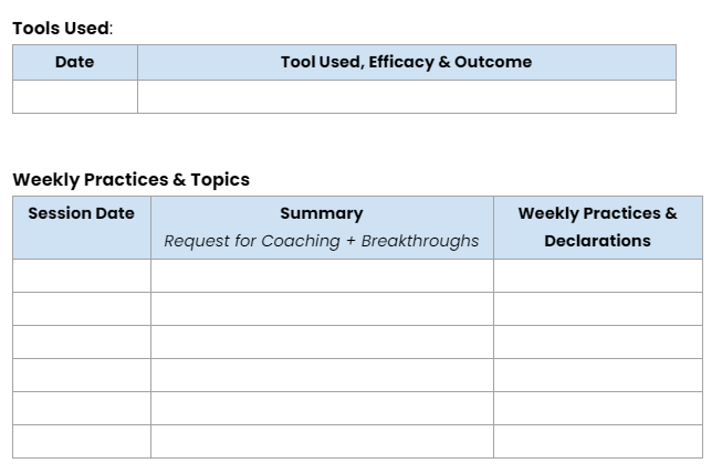 Before beginning to work with any new client, I paste this tab at the top of my notes to (1) remind myself of the greatness of the person in front of me and (2) track key information and progress made during our time together.